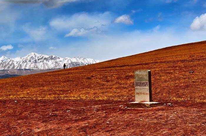 羌塘自然保护区是中国海拔最高、面积最大的自然保护区,里面是典型的高原荒漠生态景观,也有湖泊、冰川和雪山分布,但一眼望去非常荒凉,只有一块石碑和稀疏的杂草,让人感到非常诡异。