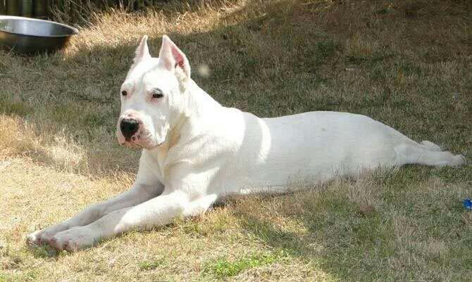 杜高犬又名阿根廷獒,身高60~68厘米,它们活泼友好,主要用来狩猎大型猎物。