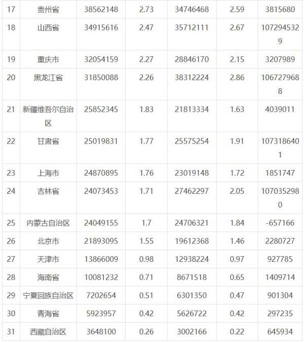 排名第三是河南省,总人口数为为99365519人,与2010年第六次全国人口普查相比,增加了5341952人。男性占比51.16%,女性占比48.84%。