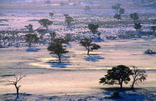 卡拉哈迪盆地的地势十分平坦,呈现的是宽宽浅浅的形态。这里昼夜温差比较大,拥有着十分丰富的水资源,和其他盆地一样这里的矿产资源也是比较丰富的。