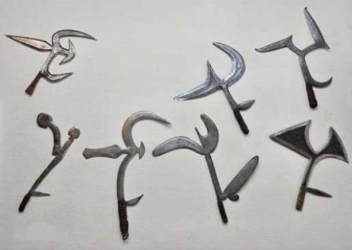 峨眉刺一般有约一尺长,两头扁平,中间偏粗,而且正中间还有有一个能用手抠住的圆孔,能灵活的操作转动,不过关于它到底是谁打造这个问题就是比较有争议的了。
