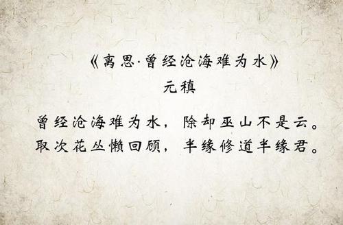 曾经沧海难为水,除却巫山不是云。取次花丛懒回顾,半缘修道半缘君。