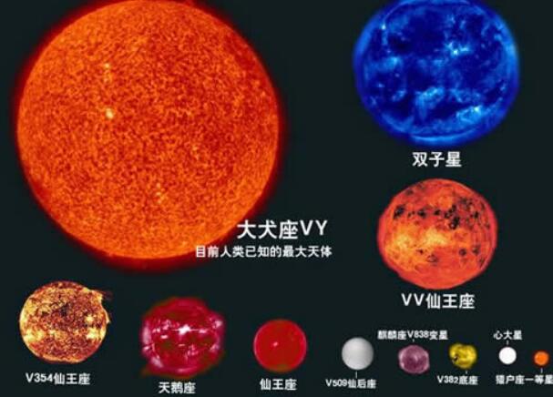 大犬座VY是一颗位于大犬座的红色的特超巨星,首先是质量,它是平均质量为太阳的17倍;其次是半径,它是太阳半径的1420倍,体积约为太阳的28.6亿倍,是宇宙已知第七大恒星,位列银河系十大恒星排行榜第二位
