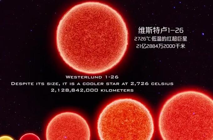 维斯特卢1-26,位于超星团维斯特卢1内,其质量亦以很快的速率流失,所以它毫无疑问也是特超巨星之一。据了解,维斯特卢1-26体积极大,半径为太阳的1530-1580倍,将其列入宇宙十大特超巨星是没有问题的。