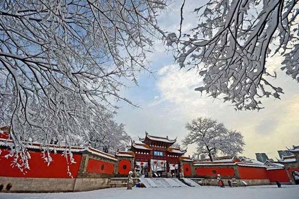 栖霞山是我国四大赏枫胜地之一,被称为“六朝胜迹”,山上有众多历史遗迹,也被赞誉“一座栖霞山,半部金陵史”,一场大雪过后,皑皑白雪将栖霞山变成了一幅“远山青黛披银装”的水墨画,使得栖霞山比平时多了几分豪迈。是南京十大赏雪胜地排行榜中的第三位。