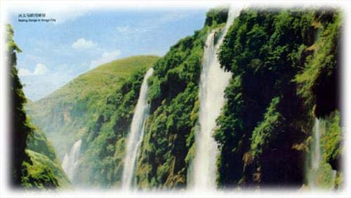 马岭河峡谷距兴义市约4公里左右,峡内,河水清澈,晶莹透锡,客人漂流,乐此不疲,峡侧,彩崖峡迎风而立,灰色的石崖布景中分布着一道道桔红、灰白、绛紫、果绿各种色彩或粗或细或长或短的线条,故名曰:彩崖峡。好似一幅巨大的彩色画屏,彩崖倒映水中,又形成一道彩虹水纹顺水而移,美不胜收。