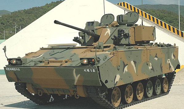 K-21战斗装甲车是韩国国防部1999年12月着手研发,2009年11月列装,重约26吨,可搭载3名乘员和9名士兵。该车在防护性、火力性和机动性等方面都较为优越,具有两栖性能,车身侧面的侧裙板安装有水上漂浮装置,水上推进采用履带划水方式,最大公路速度可达70千米/小时,水上速度7.8千米/小时。
