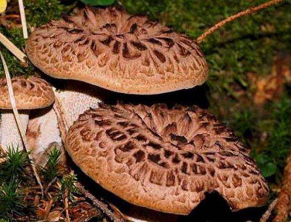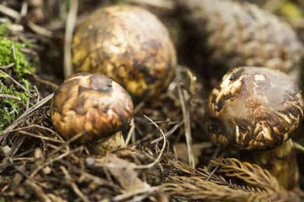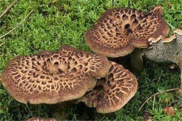 虎掌菌的菌盖呈同心圆排列,直径约为10厘米,表面有暗灰色鳞片,因形似虎掌而得名,且虎掌菌的菌柄中生或偏生,广泛分布在甘肃、新疆、四川、云南等地。