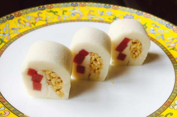 芸豆卷是以芸豆和豆沙为主要原料制作的一道北京特色传统名点,外观色泽雪白,吃起来柔软细腻,香甜可口,而且营养丰富,还曾是慈禧太后的御前御点。