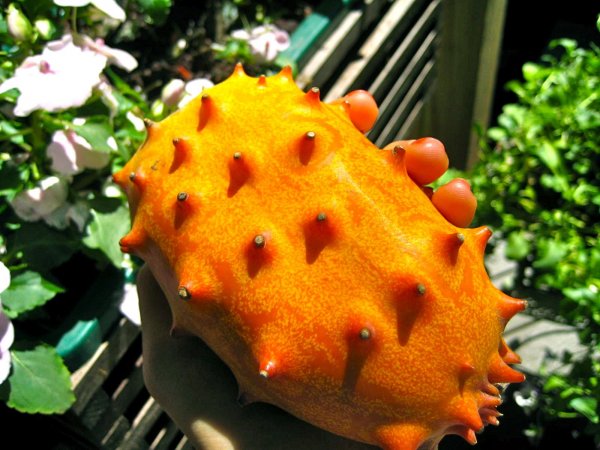 刺角瓜又称“非洲角瓜”,虽然外表看上去很多刺,让人感觉恶心,但是口感确是受很多人的喜爱,里面黏黏糊糊的像胶状一样。多生长在沙漠地区,盛产于非洲的喀拉哈里沙漠。