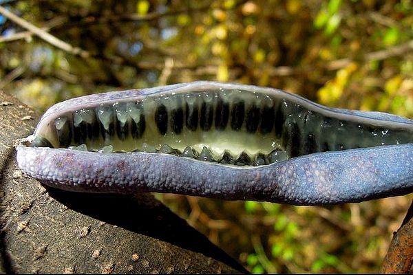这是来自中国南方的猫屎瓜,成熟猫屎瓜大小类似手指,颜色却是暗黑系的蓝紫色,因此还有“死人手指”这个吓人的名字。轻轻掰开猫屎瓜的外壳,目击那条腐烂感强烈的半透明灰白果肉,这玩意简直像僵尸的两排牙齿。但这家伙...吃过的人都说很好吃,是不容错过的那种清甜诶!