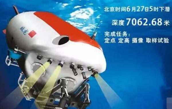 2012年6月24日,中国蛟龙号在世界上最深的深渊——马里亚纳海沟下潜7062米,创造了下潜最深的记录,在世界最深潜水艇排名中排第三位。