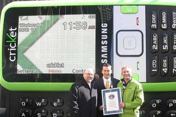 除了世界上最大的电话之外,实际上著名的三星公司也联合美国运营商共同将自己的产品放大了数倍,制作了一款世界上最大的手机,据说是按照SCH-r450这一型号的手机等比例放大的,甚至能正常的使用,比如发短信、拨电话等,不过这个制作过程非常艰难,足足花费了五年的时间,整体达到了4.57米长。