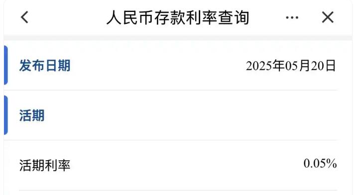 5月20日,工商银行、农业银行、中国银行、建设银行、招商银行等在其官方App或网站调整了人民币存款利率表。其中,活期存款下调0.05个百分点至0.05%,各期限定期存款挂牌利率下调0.15-0.25个百分点。具体来说,3个月、6个月、一年期、二年期定期存款挂牌利率均下调15个基点至0.65%、0.85%、0.95%和1.05%,三年期和五年期定期存款挂牌利率均下调25个基点至1.25%和1.30%,调整前上述期限定期存款挂牌利率分别为0.8%、1.00%、1.10%、1.20%、1.50%和1.55%。