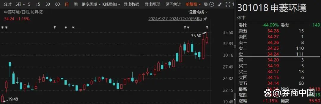 截至12月20日收盘,申菱环境股价报收于34.24元/股。以此估算,张宇浮盈约1.38亿元。